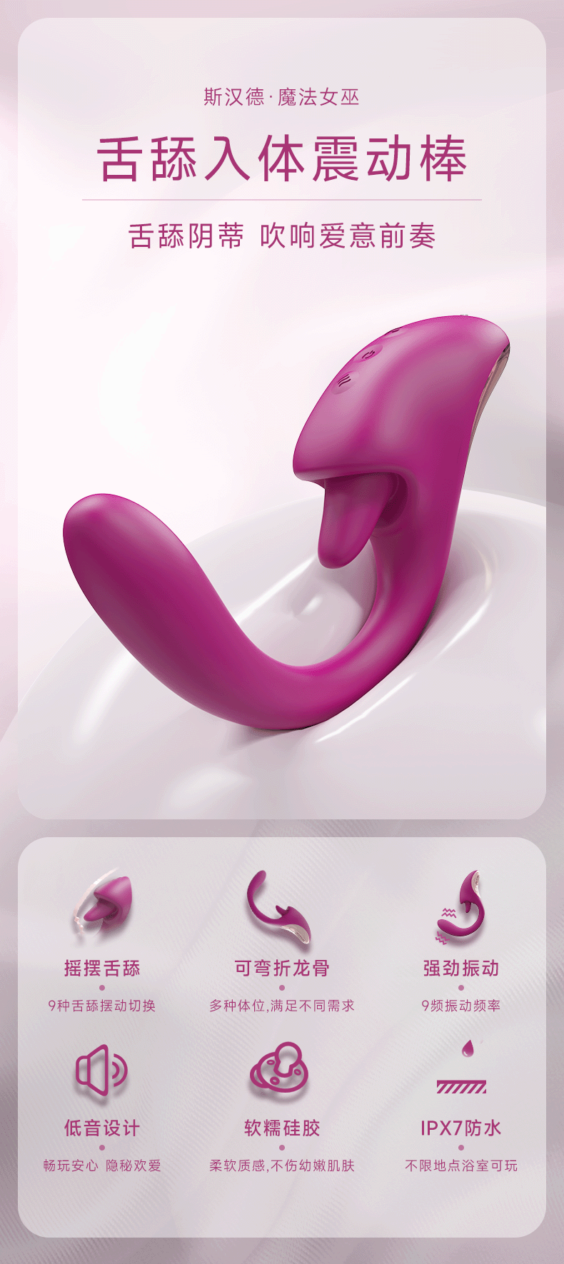Shihande H020 Magic Witch Tongue-Licking Vibrator – Internal & External Strong Vibration, Female Use